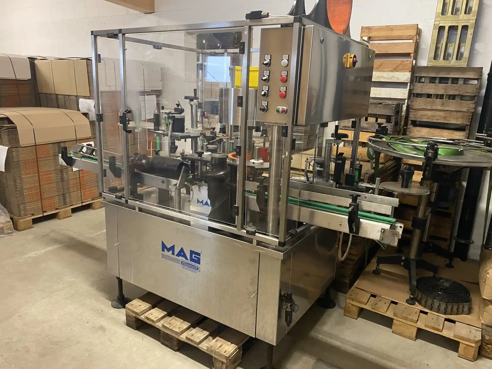1 / 8Diese gebrauchte Etikettiermaschinen von Mag ist sofort verfügbar und kann direkt nach Österreich geliefert werden. Baujahr: 2002. Leistung: 3000 BPH. Für weitere Details, Preisverhandlungen oder eine Besichtigung kontaktieren Sie uns per E-Mail an info@elitekno.com, telefonisch unter +39 045 4770786 oder per WhatsApp. Wir liefern gebrauchte Abfüllanlagen, Etikettiermaschinen, Verschließmaschinen und Verpackungsmaschinen nach Wien, Graz, Linz, Salzburg, Innsbruck und in alle Bundesländer Österreichs.