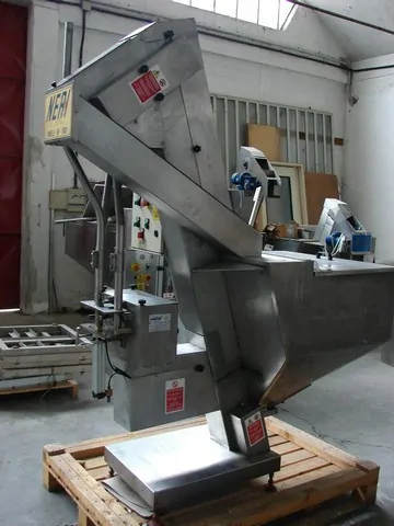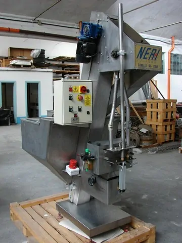 Used Caps Elevator Neri Year: 2005 Speed: 12.000 Bph Elevator with stainless steel bottom hopper and closing cover Stainless steel cap towing chain Electronic device for missing caps in the hopper Cap measurements: Ø 22mm – 26mm H 36 mm – 45mm